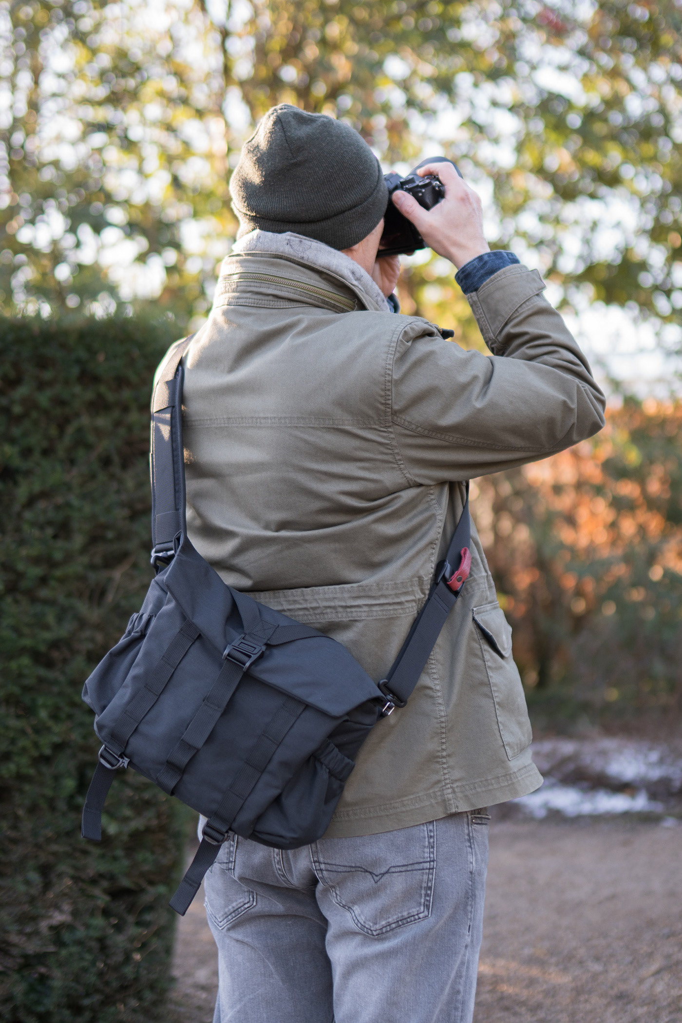 A sling like the Pilot 7L is ideal for street photography and city as it is quite small and discreet. It sits close to the body, and provides quick access without drawing attention, which is helped by the quiet fabric and magnetic opening.